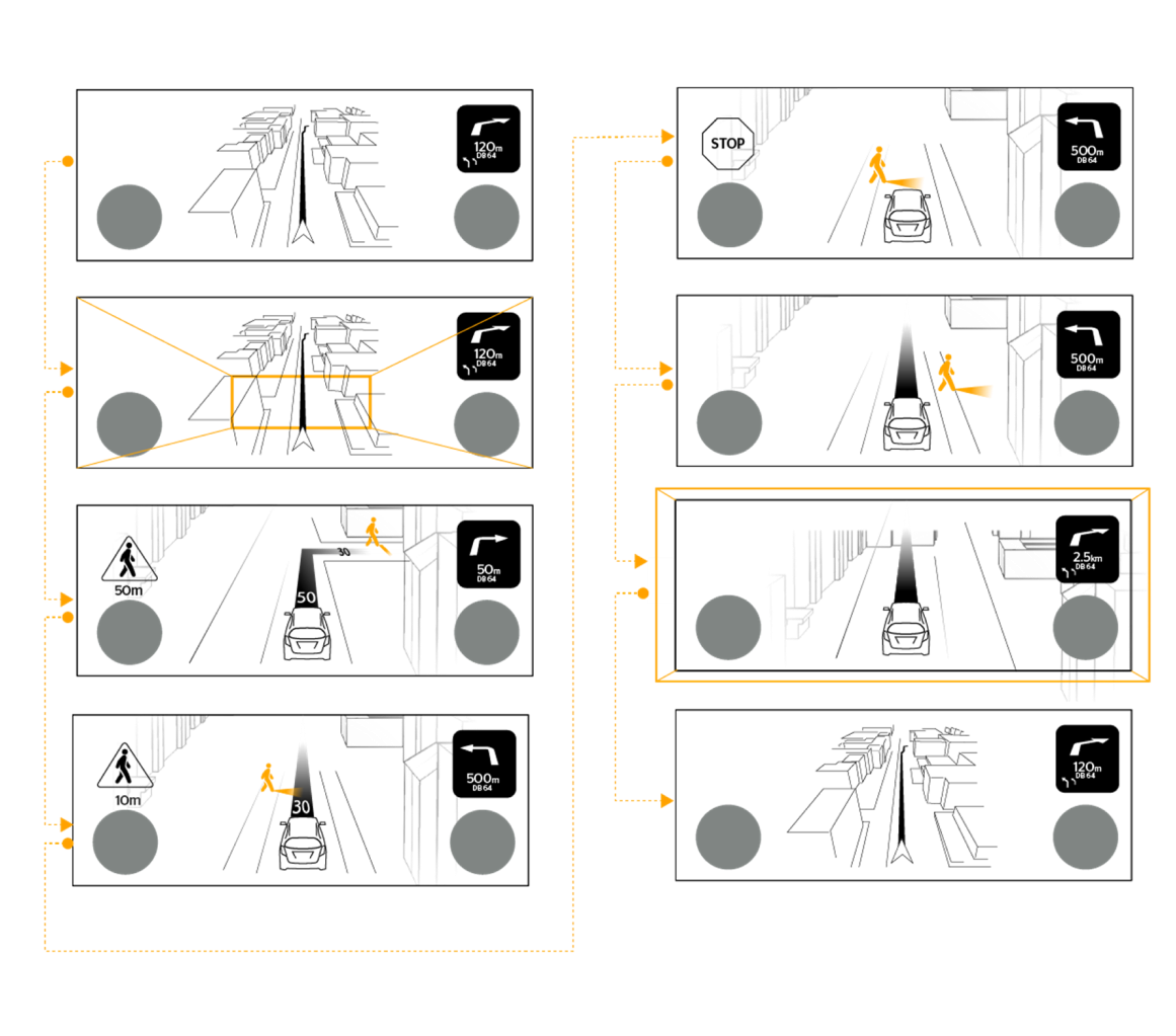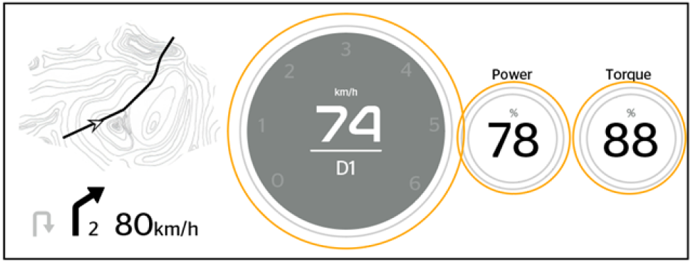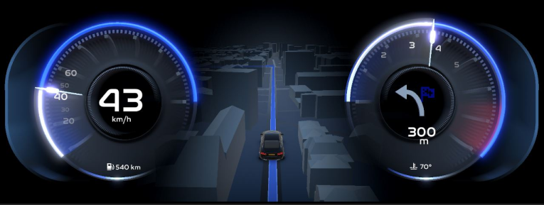 combine several info like navigation and eyesight, turn by turn guidance, Big and small instrumentation transition...