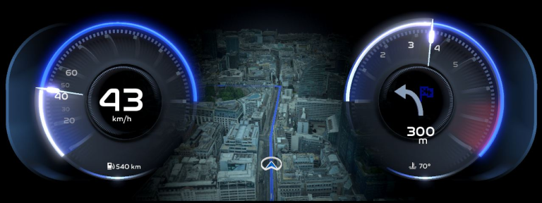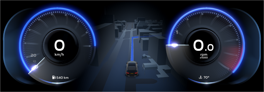 The challenge of this project is to promote our expertise in automotive human-machine interface solutions and 3D Leia Display and to implement 3D navigation and cluster on 3D display ​with new wow-factor and a better UX.