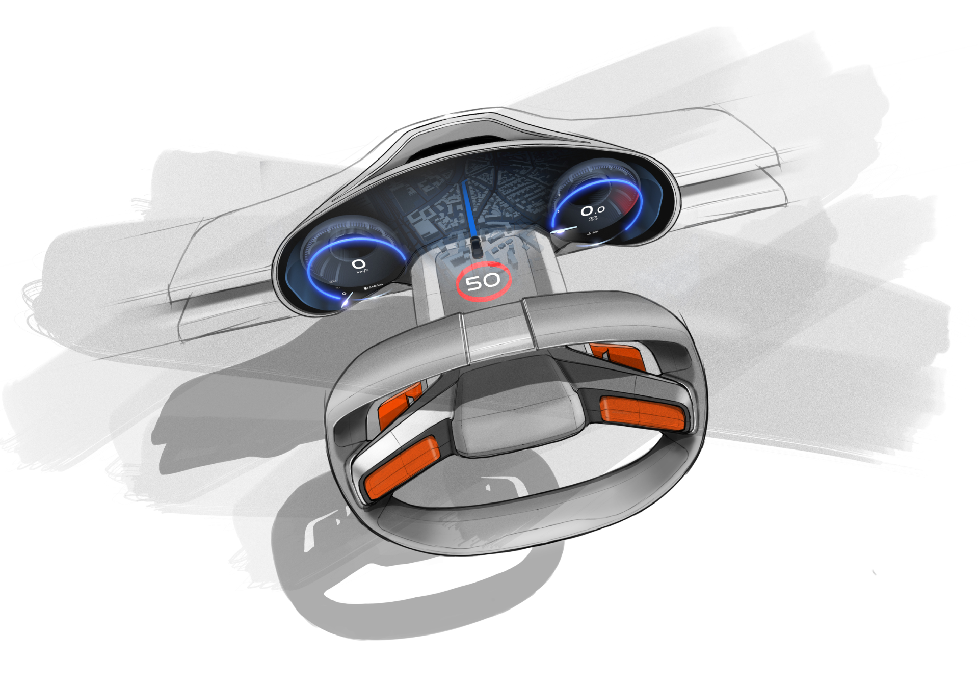 The idea of this project is to produce an immersive experience through 3D technology without glasses and thus bring depth, light, texture and a sense of volume to automotive interfaces. This project propels images off the screen and closer to us than we ever imagined.