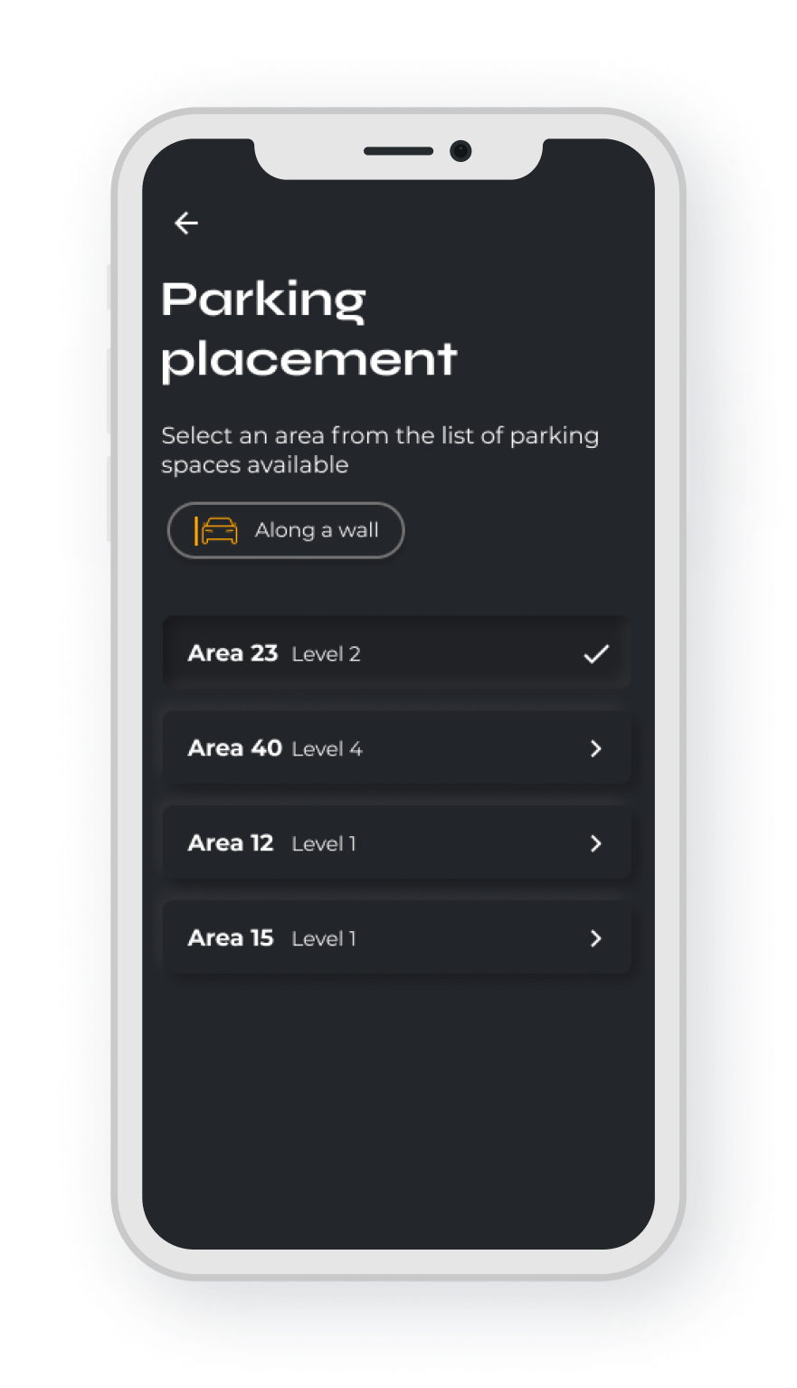 The user can choose a specific area in the car park for the vehicle to search for a free parking space